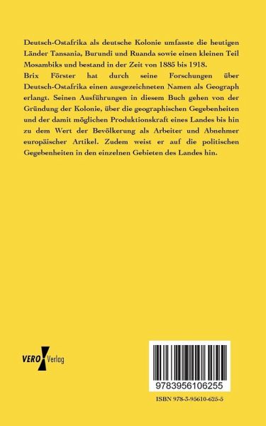 Brix Förster hat durch seine Forschungen über Deutsch-Ostafrika einen ausgezeichneten Namen als Geograph erlangt. Seinen Ausführungen in diesem Buch gehen von der Gründung der Kolonie, über die geographischen Gegebenheiten und der damit möglichen Produktionskraft eines Landes bis hin zu dem Wert der Bevölkerung als Arbeiter und Abnehmer europäischer Artikel. Zudem weist er auf die politischen Gegebenheiten in den einzelnen Gebieten des Landes hin.