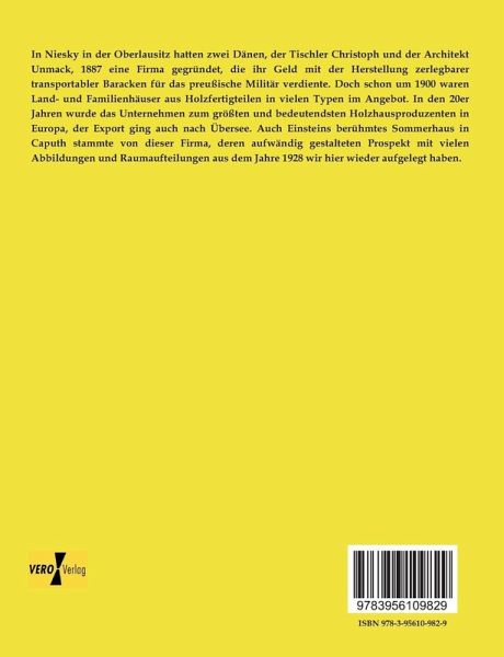 In Niesky in der Oberlausitz hatten zwei Dänen, der Tischler Christoph und der Architekt Unmack, 1887 eine Firma gegründet, die ihr Geld mit der Herstellung zerlegbarer transportabler Baracken für das preußische Militär verdiente. Doch schon um 1900 waren Land- und Familienhäuser aus Holzfertigteilen in vielen Typen im Angebot. In den 20er Jahren wurde das Unternehmen zum größten und bedeutendsten Holzhausproduzenten in Europa, der Export ging auch nach Übersee. Auch Einsteins berühmtes Sommerhaus in Caputh stammte von dieser Firma, deren aufwändig gestalteten Prospekt mit vielen Abbildungen und Raumaufteilungen aus dem Jahre 1928 wir hier wieder aufgelegt haben.