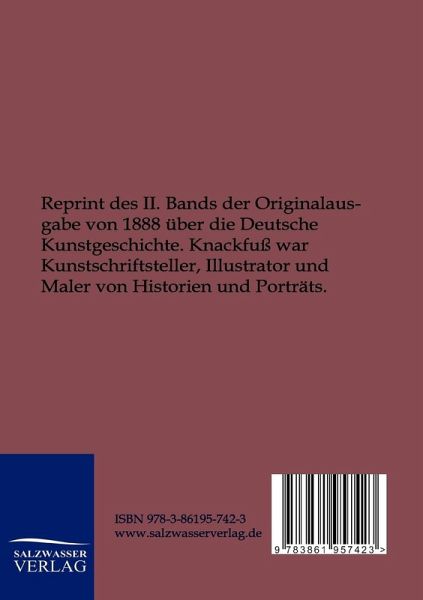Reprint des II. Bands der Originalausgabe von 1888 über die Deutsche Kunstgeschichte. Knackfuß war Kunstschriftsteller, Illustrator und Maler von Historien und Porträts.