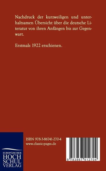 Nachdruck der kurzweiligen und unterhaltsamen Übersicht über die deutsche Literatur von ihren Anfängen bis zur Gegenwart. Erstmals 1922 erschienen.