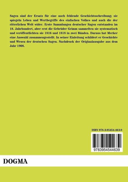 Sagen sind der Ersatz für eine noch fehlende Geschichtsschreibung; sie spiegeln Leben und Wertbegriffe des einfachen Volkes und auch die der ritterlichen Welt wider. Erste Sammlungen deutscher Sagen entstanden im 18. Jahrhundert, aber erst die Gebrüder Grimm sammelten sie systematisch und veröffentlichten sie 1816 und 1818 in zwei Bänden. Daraus hat Merker eine Auswahl zusammengestellt. In seiner Einleitung schildert er Geschichte und Wesen der deutschen Sagen. Nachdruck der Originalausgabe aus dem Jahr 1908.