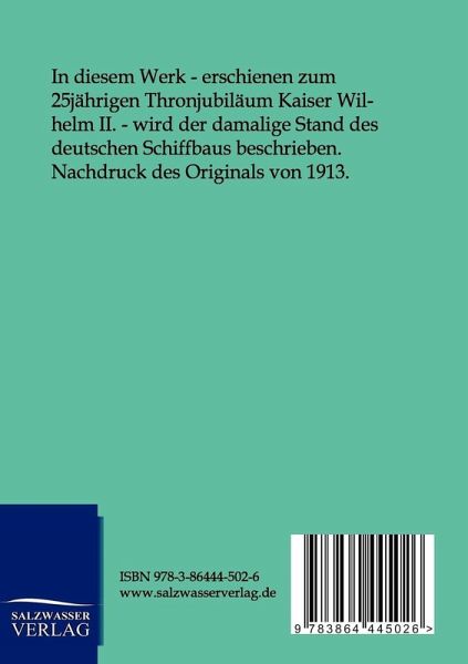 In diesem Werk - erschienen zum 25jährigen Thronjubiläum Kaiser Wilhelm II. - wird der damalige Stand des deutschen Schiffbaus beschrieben. Nachdruck des Originals von 1913.