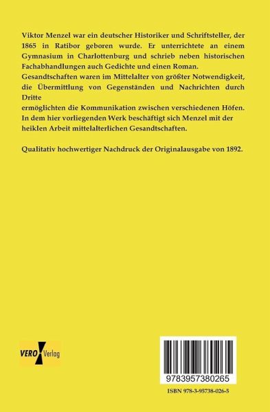 Viktor Menzel war ein deutscher Historiker und Schriftsteller, der 1865 in Ratibor geboren wurde. Er unterrichtete an einem Gymnasium in Charlottenburg und schrieb neben historischen Fachabhandlungen auch Gedichte und einen Roman.