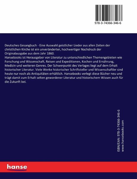 Deutsches Gesangbuch - Eine Auswahl geistlicher Lieder aus allen Zeiten der christlichen Kirche ist ein unveränderter, hochwertiger Nachdruck der Originalausgabe aus dem Jahr 1860.