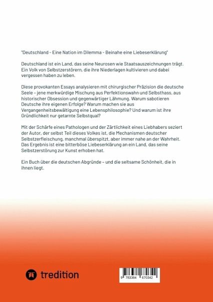 Deutschland - Eine Nation im Dilemma - Beinahe eine LiebeserklärungDie Deutschen lieben anscheinend ihre Niederlagen wie andere Völker ihre Siege. Warum nur? Diese Nation, die ihre Geschichte wie eine Wunde leckt und dabei Gefallen daran findet, ist das Subjekt eines Buches, welches das Dilemma einer ganzen Kultur seziert: "Deutschland - Eine Nation im Dilemma - Beinahe eine Liebeserklärung".Deutschland - ein Land, das aus dem Scheitern eine Kunstform gemacht hat. Der Autor dieses provokanten Werks, Hermann Selchow, seziert die deutsche Seele mit der Präzision eines Pathologen und der Zärtlichkeit eines Liebhabers. Das Ergebnis: ein literarisches Röntgenbild einer Nation, manchmal überspitzt, aber immer nahe an der Wahrheit.Die berühmte deutsche Gründlichkeit entpuppt sich als systematische Selbstdemontage, der Perfektionsdrang als Lähmung durch Analyse. Aus Vergangenheitsbewältigung wird Gegenwartsverweigerung. Ein Volk, das seine Neurosen wie Orden trägt und dabei vergisst zu leben.Doch dieses Buch ist kein billiger Voyeurismus deutscher Defekte. Es ist Diagnostik mit Herz, Kritik ohne Verachtung. Der Autor, selbst Teil dieses Volkes, entlarvt nicht nur die Mechanismen deutscher Selbstsabotage, sondern zeigt auch deren produktive Kraft. Denn wer sich so virtuos selbst zerstört, beherrscht auch die Kunst der Erneuerung.Deutsche Leser werden sich ertappt fühlen - und vielleicht zum ersten Mal über ihre eigenen Abgründe schmunzeln können. Fremde erhalten Einblick in die Seelenlandschaft eines Volkes, das seine Traumata wie Reliquien hütet. Soziologen und Psychologen finden womöglich Material für Jahre der Analyse.Geschrieben ist das Buch im Stil der liebevollen Obduktion: scharfsinnig ohne Kälte, ironisch ohne Zynismus. Eine seltene Balance zwischen Wissenschaft und Menschlichkeit.Die Zukunftsfrage bleibt: Können die Deutschen ihre Selbstzerstörung überwinden? Oder ist sie vielleicht ihr kostbarstes Gut? Der Autor liefert keine einfachen Antworten, aber die richtigen Fragen."Deutschland - Eine Nation im Dilemma" ist Therapie als Literatur, Gesellschaftskritik als Liebesakt. Ein Buch für alle, die Deutschland verstehen wollen - und für Deutsche, die sich endlich selbst ertragen möchten.