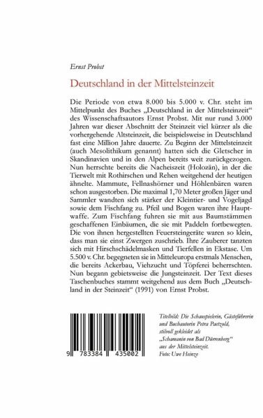 Die Periode von etwa 8.000 bis 5.000 v. Chr. steht im Mittelpunkt des E-Books "Deutschland in der Mittelsteinzeit" des Wissenschaftsautors Ernst Probst. Mit nur rund 3.000 Jahren war dieser Abschnitt der Steinzeit viel kürzer als die vorhergehende Altsteinzeit, die beispielsweise in Deutschland fast eine Million Jahre dauerte. Zu Beginn der Mittelsteinzeit (auch Mesolithikum genannt) hatten sich die Gletscher in Skandinavien und in den Alpen bereits weit zurückgezogen. Nun herrschte bereits die Nacheiszeit (Holozän), in der die Tierwelt mit Rothirschen und Rehen weitgehend der heutigen ähnelte. Mammute, Fellnashörner und Höhlenbären waren schon ausgestorben. Die maximal 1,70 Meter großen Jäger und Sammler wandten sich stärker der Kleintier- und Vogeljagd sowie dem Fischfang zu. Pfeil und Bogen waren ihre Hauptwaffe. Zum Fischfang fuhren sie mit aus Baumstämmen geschaffenen Einbäumen, die sie mit Paddeln fortbewegten. Die von ihnen hergestellten Feuersteingeräte waren so klein, dass man sie einst Zwergen zuschrieb. Ihre Zauberer tanzten sich mit Hirschschädelmasken und Tierfellen in Ekstase. Um 5.500 v. Chr. begegneten sie in Mitteleuropa erstmals Menschen, die bereits Ackerbau, Viehzucht und Töpferei beherrschten. Nun begann gebietsweise die Jungsteinzeit. Der Text dieses Taschenbuches stammt weitgehend aus dem Buch "Deutschland in der Steinzeit" (1991) von Probst.