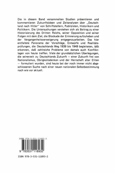 I. Deutschlands Zukunft unter den Völkern: Perspektiven des Exils.- Des Weltbürgers Thomas Mann doppeltes Deutschland.- Jüdische Identität und deutsche Nation.- "Der Tag danach". Zur Auseinandersetzung um Deutschland nach Hitler im Pariser Sommer 1939.- Die Krise und die Intellektuellen. Klaus Mann zwischen ästhetischer Opposition und republikanischem Schriftstellerethos.- Johannes Steel: "The Future of Europe". Analysen und Konzepte eines populären Journalisten in den USA.- Die Bestrafung und Besserung der Deutschen. Über die amerikanischen Kriegsziele, über Völkerpsychologie und Emil Ludwig.- Die civitas hominum als Wolkenkuckucksheim? Ideen zu einer besseren Nachkriegswelt im New Yorker Freundeskreis Erich Kahler, Hermann Broch und Hannah Arendt.- Europäische Föderation und neuer Völkerbund. Die Diskussion im deutschen Exil zur Gestaltung der internationalen Beziehungen nach dem Krieg.- "Let us be prepared to win the peace". Nachkriegsplanungen emigrierter deutscher Sozialwissenschaftler an der New School for Social Research in New York.- Wissenschaftliche Kompetenz und politische Ohnmacht. Deutsche Emigranten im amerikanischen Staatsdienst 1942-1949.- "Hitler besiegen - das genügt nicht!". Zusammenarbeit zwischen amerikanischen und exilierten Gewerkschaftlern.- Programme für ein Nachkriegsdeutschland im lateinamerikanischen Exil.- "Unerschüttert bleibt mein Vertrauen in den guten Kern unseres Volkes". Der Kommunist Paul Merker und die Exil-Diskussion um Deutschlands Schuld, Verantwortung und Zukunft.- Von den Schwierigkeiten, ein "deutscher Patriot" zu sein. Karl Otto Paetel und Deutschland.- II. Nachkriegs-Deutschland: Perspektiven der ,besetzten Nation'.- Konzeptionen für die Nachkriegsdemokratie. Pläne undÜberlegungen im Widerstand, im Exil und in der Besatzungszeit.- "Deutschlands Sieg oder Untergang". Perspektiven aus dem Dritten Reich auf die Nachkriegsentwicklung.- Tabuisierung und Anpassung in Ost und West. Bemerkungen zur deutschen Geschichte nach 1945.- Messianisches Hoffen, tapfere Skepsis, Lebensbegehren: Jugend in den Nachkriegsjahren. Mit einer Nachrede wider die Trauer-Rhetorik.- Die Schuldfrage. Vergangenheitsverweigerung und Lebenslügen in der Diskussion 1945-1949.- Entwürfe einer zweiten Republik. Zukunftsprogramme in den "Frankfurter Heften" 1946-1949.- Deutschlands Platz in einem "christlichen Abendland". Konservative Publizisten aus dem Tat-Kreis in der Kriegs- und Nachkriegszeit.- Die Autoren der Beiträge.- Personenregister.