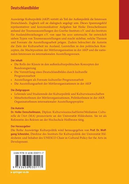 Auswärtige Kulturpolitik (AKP) vertritt als Teil der Außenpolitik die Interessen Deutschlands. Zugleich soll sie dialogisch angelegt sein. Dieses Spannungsfeld repräsentativer und kommunikativer Aufgaben hat Heike Denscheilmann anhand der Tourneeausstellungen des Goethe-Instituts e.V. und des Instituts für Auslandsbeziehungen e.V. von 1990 bis 2010 untersucht. Sie entwickelt sieben Typen von Tourneeausstellungen und macht sichtbar, welche Themen und Formate die Ausstellungsarbeit prägen. Zudem beleuchtet die Autorin die Ziele der Kulturarbeit im Ausland, Leerstellen in den politischen Konzepten, die Machtposition der Mittlerorganisation in der AKP und die nationalen Interessen im internationalen Ausstellungswesen.
