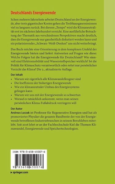 Das Buch möchte eine Orientierung in dem komplexen Umfeld der Energiewende bieten und liefert Antworten auf Fragen wie diese: Welche Folgen hat die Energiewende für Deutschland? Wie sinnvoll sind Elektromobilität und Wasserstoffspeicher wirklich? Ist die Politik für Klimaschutz verantwortlich oder rettet nur persönlicher Verzicht das Klima? Die 2., aktualisierte Auflage.