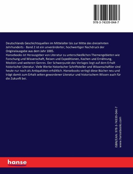 Deutschlands Geschichtsquellen im Mittelalter bis zur Mitte des dreizehnten Jahrhunderts - Band 2 ist ein unveränderter, hochwertiger Nachdruck der Originalausgabe aus dem Jahr 1885.