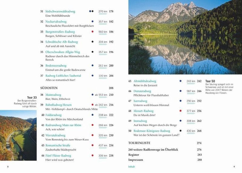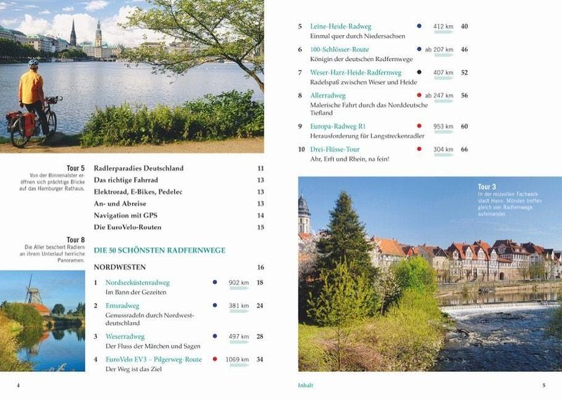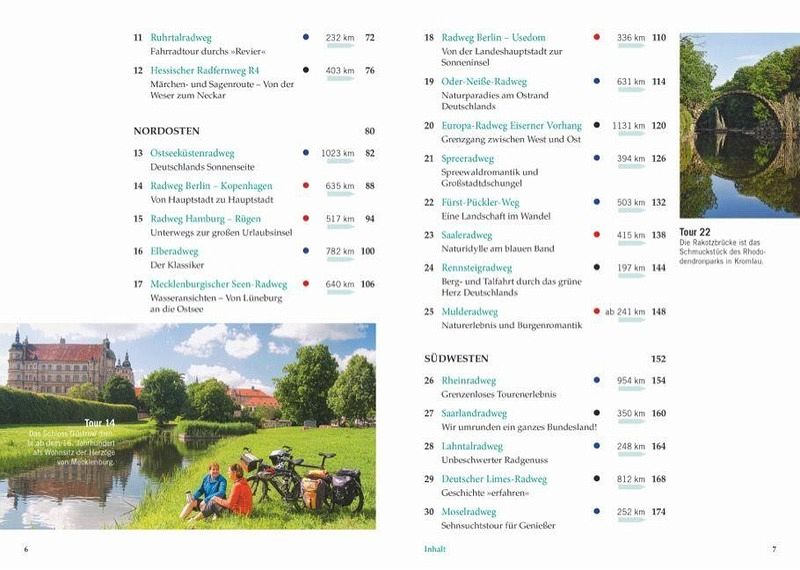 "Wer in Deutschland mit dem Rad auf Tour gehen möchte, hat die Qual der Wahl: Mehr als 100.000, überwiegend vorbildlich ausgebaute und beschilderte Radtourenkilometer und über 300 Routen durchziehen das Land. Ob entlang der Küste oder durch die Alpen, ob an Ems und Elbe, durchs Weserbergland oder den Taunus - jeder Radfernweg ist eine Entdeckungstour für sich. Der Autor und begeisterte Weitradler Thorsten Brönner stellt neben bekannten Flussrouten wie dem Moselradweg oder dem Neckartalweg auch Städtetouren, Naturradwege und verschiedene Themenrouten vor. Jede der fünfzig Strecken, die alle 16 Bundesländer abdecken, wird auf jeweils vier bis sechs Seiten ausführlich beschrieben, dazu gehören neben Infos zum Tourencharakter mit Höhenprofil auch Hinweise auf wichtige Sehenswürdigkeiten und Übernachtungstipps. Ein kompakter Tourensteckbrief informiert auf einen Blick über Wegmarkierungen, empfehlenswertes Kartenmaterial und Ausgangs- wie Endpunkt der Tour. Obendrauf gibt's mehr als 350 Fotos, eine Übersichtskarte mit allen beschriebenen Wegen, Hinweise zu Kombinationsmöglichkeiten verschiedener Touren und GPS-Daten zum Download." -- Thorsten Brönner: Deutschlands schönste Radfernwege. Bruckmann Verlag 2011, 288 S.