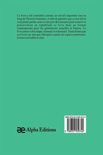 Deux farces inédites attribuées à la reine Marguerite de Navarre, un livre classique, a été considéré comme important tout au long de l'histoire de l'humanité, et pour que cet ouvrage ne soit jamais oublié, chez Alpha Editions, nous avons fait des efforts pour sa préservation en rééditant ce livre dans un format moderne pour les générations présentes et futures. Tout ce livre a été reformaté, retapé et conçu. Ces livres ne sont pas constitués de copies numérisées de leur ¿uvre originale et le texte est donc clair et lisible.