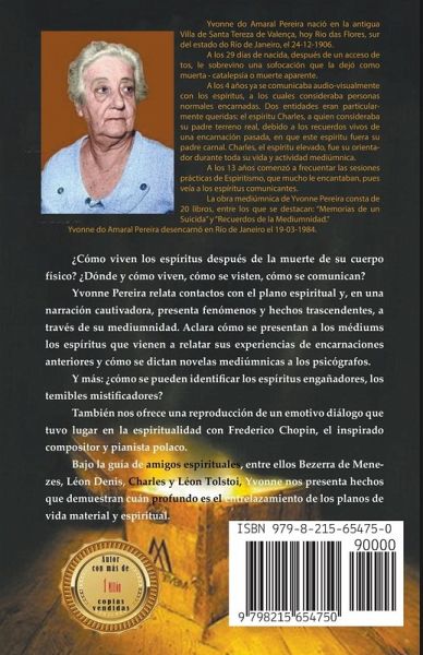 ¿Cómo viven los espíritus después de la muerte de su cuerpo físico? ¿Dónde y cómo viven, cómo se visten, cómo se comunican? Yvonne Pereira relata contactos con el plano espiritual y, en una narración cautivadora, presenta fenómenos y hechos trascendentes, a través de su mediumnidad. Aclara cómo se presentan a los médiums los espíritus que vienen a relatar sus experiencias de encarnaciones anteriores y cómo se dictan novelas mediúmnicas a los psicógrafos. Y más: ¿cómo se pueden identificar los espíritus engañadores, los temibles mistificadores? También nos ofrece una reproducción de un emotivo diálogo que tuvo lugar en la espiritualidad con Frederico Chopin, el inspirado compositor y pianista polaco. Bajo la guía de amigos espirituales, entre ellos Bezerra de Mene-zes, Léon Denis, Charles y Léon Tolstoi, Yvonne nos presenta hechos que demuestran cuán profundo es el entrelazamiento de los planos de vida material y espiritual.