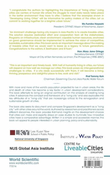 With more and more of the world's population projected to live in urban areas, the life and death of cities has become a key factor in urban development considerations. This book attempts to bring an original contribution on the analysis of creating living cities. It advances the concept and framework of a "living city" and also explicates the key attributes of a "living city" that are increasingly critical to the reinvigoration and sustainable growth of cities. The book also seeks to document and compare Singapore's development as a "living city'" with other Asian and world cities. Contributed by researchers and practitioners across different disciplines, the book provides first-hand insights on the development choices that cities can make and expertly draws on case studies to illuminate how innovative cities have a comparative advantage. Written in a simple and accessible manner, this book will appeal to people interested in urban planning, policy and sustainability.