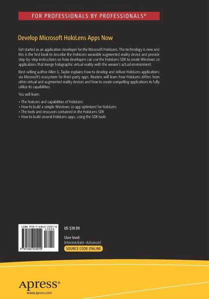 Best-selling author Allen G. Taylor explains how to develop and deliver HoloLens applications via Microsoft's ecosystem for third party apps. Readers will also learn how HoloLens differs from other virtual and augmented reality devices and how to create compelling applications to fully utilize its capabilities.