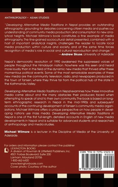 Michael Wilmore examines local, community media organizations in Nepal within the wider context of the historical, cultural, and social lifeworlds of their producers and consumers. His analysis of the role that media play in the formation of cultural identity and his use of ethnographic research methodologies provide a detailed, empirically-based understanding of the complex relationships that exist between local communities, the formation of modern nation-states, and global media.