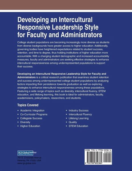 "This book examines student retention and success among underrepresented college student populations by analyzing factors impacting their persistence towards graduation as well as exploring strategies to enhance intercultural responsiveness among these populations"--