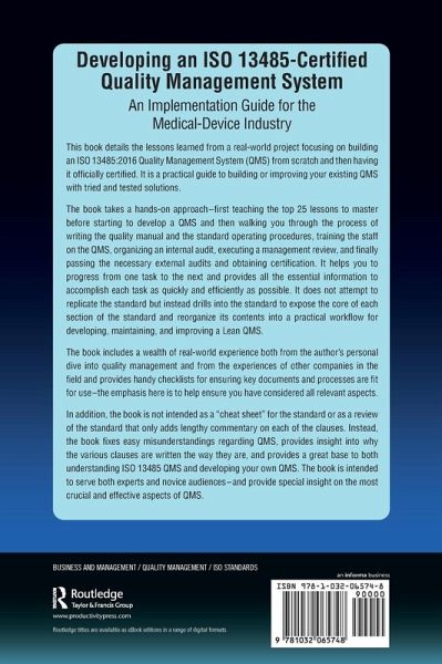 This book details the lessons learned from a real-world project focusing on building an ISO 13485:2016 Quality Management System (QMS) from scratch and then having it officially certified. It is a practical guide to building or improving your existing QMS with tried and tested solutions.