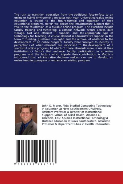 The rush to transition education from the traditional face-to-face to an online or hybrid environment increases each year. Universities realize online education is crucial to the future survival and expansion of their educational programs. Herein we discuss the infrastructure support that is vital to the foundation of a durable online program. The essentials include faculty training and mentoring, a campus network, secure access, data storage, fast and efficient IT support, and the appropriate type of technology for teaching. A crucial element is administrative support in the form of funding, guidance, oversight, and the removal of obstacles to the development of an online program. Faculty were surveyed to identify: a) perceptions of what elements are important to the development of a successful online program; b) which of those elements were in use at their institution; c) factors that enhance faculty participation in an online program, and the factors which impede their contribution. A Matrix is introduced that administrative decision- makers can use to develop an online teaching program or enhance an existing program.