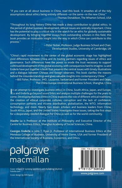 In an attempt to investigate business ethics in China, Lu and Enderle, go beyond sound bites and analyse multiple challenges for the years to come. Developing Business Ethics in China explores the role of different ethical traditions, the creation of ethical corporate cultures, corruption and the lack of confidence, consumption patterns and income distribution, globalization, WTO, information technology, and more. Nearly two dozen scholars and business leaders from China, South Africa, Japan and the United States investigate these issues, taking the first steps for a desperately needed dialogue for China as well as for the world community.
