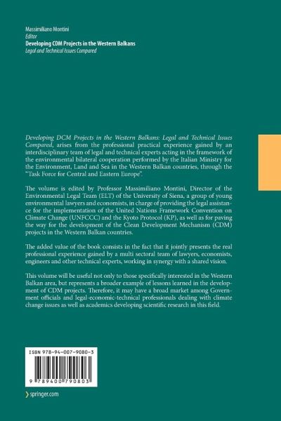 This volume will be useful not only to those specifically interested in the Western Balkan area, but represents a broader example of lessons learned in the development of CDM projects. Therefore, it may have a broad market among Government officials and legal-economic-technical professionals dealing with climate change issues as well as academics developing scientific research in this field.