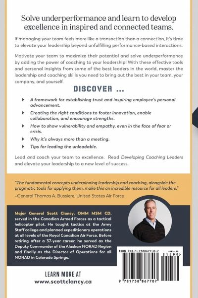 Solve underperformance and learn to develop excellence in inspired and connected teams. Off-sites and team-building exercises don't work when your employees are uninspired, disconnected, and underachieving. Performance-based interactions are unfulfilling and transactional for you and your team. It's time to systematically solve underperformance and motivate your team to maximize their potential by adding the power of coaching to your leadership! In Developing Coaching Leaders, RCAF Major General Scott Clancy simplifies leadership strategy to bridge the people gap between your team and successful management, business, and organizational practices. Using tools, techniques, and personal insights from some of the best leaders in the world, you will master the leadership and coaching skills to bring out the best in your team, your company, and yourself. In this guide you'll discover:A framework for establishing trust and inspiring employee's personal advancement to the ultimate achievement of team goals. The right conditions that foster innovation, enable collaboration, and encourage individual strengths within your team. How to show vulnerability and start leading with emotional courage, even in the face of fear or crisis. Why it's always more than a meeting-and the secrets to optimizing and prioritizing objectives based on your vision. Tried-and-true tips for leading the unleadable, coaching behavior change through wins and losses, developing a solid network of feedback, and more. To be an extraordinary leader, you need to lead and coach your team to excellence. Get Developing Coaching Leaders now and elevate your leadership to a new level of success.
