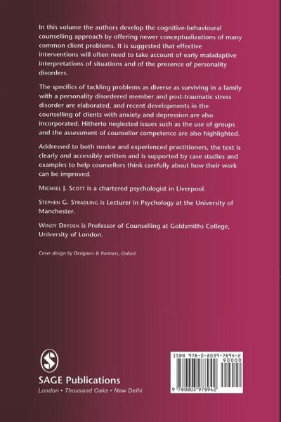 Seminars by Professor Windy Dryden. See the man live and in action. To find out more and to book your place go to www.cityminds.com ________________________________________ `[This book has] many useful insights for other therapists... make a copy of the competency checklist: if we all scored highly and consistently, there would be no need for talk of "national registration" ' - The Therapist In this volume the authors develop the cognitive-behavioural counselling approach by offering newer conceptualizations of many common client problems. It is suggested that effective interventions will often need to take account of early maladaptive interpretations of situations and of the presence of personality disorders. The specifics of tackling problems as diverse as surviving in a family with a personality disordered member and post-traumatic stress disorder are elaborated, and recent developments in the counselling of clients with anxiety and depression are also incorporated. Hitherto neglected issues such as the use of groups and the assessment of counsellor competence are also highlighted.