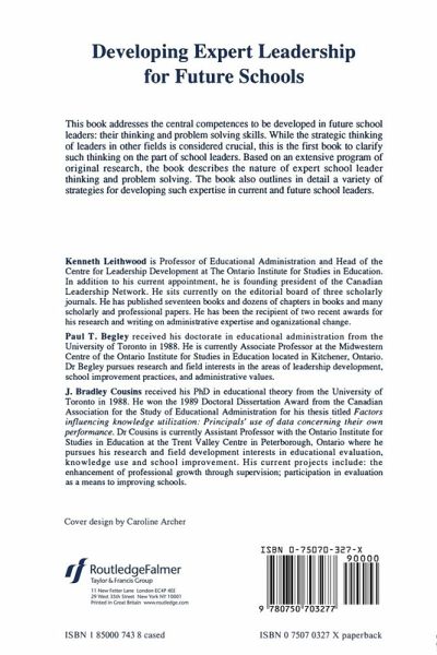 Based on the authors' research on the behaviour and thinking of school leaders, this volume presents arguments about the natue of expert school leadership. It parallels developments in the field from the early 1980s when the emphasis was on identifying the behaviours of effective principals, to the early 1990s, when the focus shifted to understanding the thinking underlying those behaviours. The ideas contained in this book should be useful in helping practising educationalists develop the skills involved in school leadership.