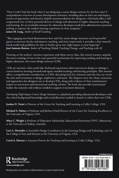 Drawing on the authorsâ extensive experience and robust survey data, this critical resource unpacks the inner workings of one of the most powerful mechanisms for improving teaching and learning in higher education: the course design institute (CDI).