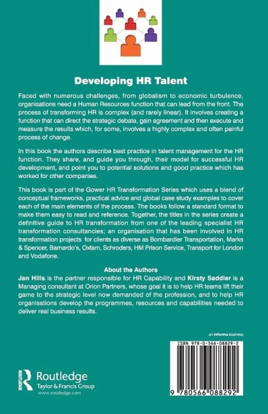 Faced with numerous challenges, from globalism to economic turbulence, organizations need an Human Resources function that can lead from the front. The process of transforming HR is complex (and rarely linear). It involves creating a function that can direct the strategic debate, gain agreement and then execute and measure the results which, for some, involves a highly complex and often painful process of change. In this book the authors describe best practice in talent management for the HR function. They share, and guide you through, their model for successful HR development, and point you to potential solutions and good practice which has worked for other companies. This book is part of the Gower HR Transformation Series which uses a blend of conceptual frameworks, practical advice and global case study examples to cover each of the main elements of the process. The books follow a standard format to make them easy to read and reference. Together, the titles in the series create a definitive guide to HR transformation from one of the leading specialist HR transformation consultancies; an organization that has been involved in HR transformation projects for clients as diverse as Bombardier Transportation, Marks & Spencer, Barnardo's, Oxfam, Schroders, HM Prison Service, Transport for London and Vodafone.