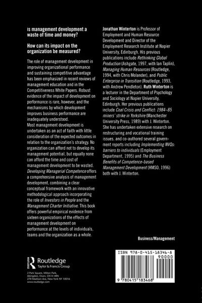 Workplace training and education have increasingly been seen as pivotal factors in improving the abilities, skills and competitiveness of industry. The book emphasizes the benefits of linking management development with organizational strategy. Features include up-to-date analysis of how management development can be measured; the first comprehensive assessment of the impact of using Management Standards; and practical illustrations with sixteen in-depth case studies of contemporary organizations.