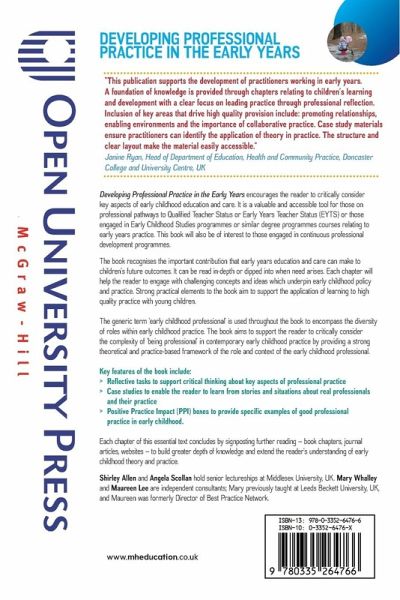 Developing Professional Practice in the Early Years encourages the reader to critically consider key aspects of early childhood education and care. The book is a valuable and accessible tool for those on professional pathways to Qualified Teacher Status (QTS) or Early Years Teacher Status (EYTS) or those engaged in Early Childhood Studies programmes or similar degree programmes courses relating to early years practice. This book will also be of interest to those engaged in continuous professional development (CPD) programmes. The book recognises the important contribution that early years education and care can make to children's future outcomes. It can be read in-depth or dipped into when need arises. Each chapter will help the reader to engage with challenging concepts and ideas which underpin early childhood policy and practice. Strong practical elements to the book aim to support the application of learning to high quality practice with young children. The generic term 'early childhood professional' is used throughout the book to encompass the diversity of roles within early childhood practice. The book aims to support the reader to critically consider the complexity of 'being professional' in contemporary early childhood practice by providing a strong theoretical and practice-based framework of the role and context of the early childhood professional. Key features of the book include: ¿ Reflective tasks to support critical thinking about key aspects of professional practice ¿ Case studies to enable the reader to learn from stories and situations about real professionals and their practice ¿ Positive Practice Impact (PPI) boxes to provide specific examples of good professional practice in early childhood. Each chapter of this essential text concludes by signposting further reading - book chapters, journal articles, websites - to build greater depth of knowledge and extend the reader's understanding of early childhood theory and practice.