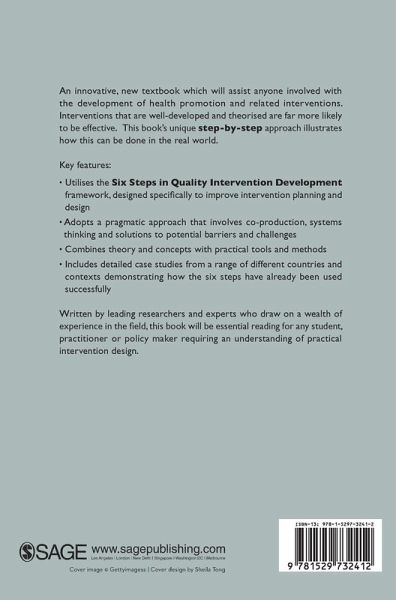 Adopts a pragmatic approach that addresses barriers and challenges to project delivery Utilises the Six Steps in Quality Intervention Development framework - a unique model designed specifically to improve intervention planning Combines the theory and concepts behind intervention development with practical methods of delivery on the ground Includes detailed case studies that provide examples of how the six steps can be used for successful intervention design As the health needs of an increasingly globalised world continue to evolve and shift, effective planning and intervention work will only become more important. Written by leading researchers and experts who draw on a wealth of experience in the field, this book will be essential reading for any student, practitioner or policy maker requiring an understanding of practical intervention design.