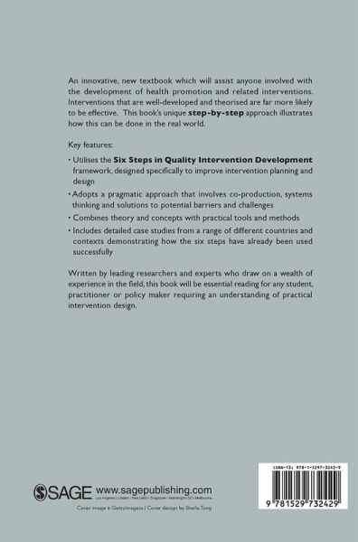 Adopts a pragmatic approach that addresses barriers and challenges to project delivery Utilises the Six Steps in Quality Intervention Development framework - a unique model designed specifically to improve intervention planning Combines the theory and concepts behind intervention development with practical methods of delivery on the ground Includes detailed case studies that provide examples of how the six steps can be used for successful intervention design As the health needs of an increasingly globalised world continue to evolve and shift, effective planning and intervention work will only become more important. Written by leading researchers and experts who draw on a wealth of experience in the field, this book will be essential reading for any student, practitioner or policy maker requiring an understanding of practical intervention design.