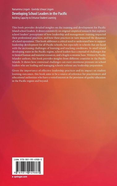Given the importance of effective leadership practices and its impact on student learning outcomes, this book aims to be a source of reference for practitioners and educational authorities who have a vested interest in the provision of quality education in the Pacific region and beyond.