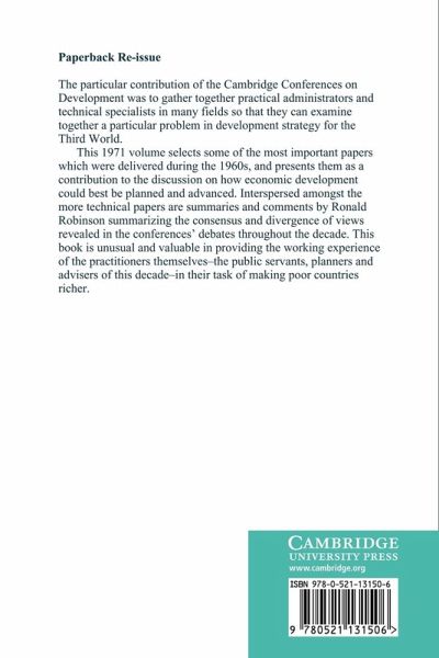 The particular contribution of the Cambridge Conferences on Development was to gather together practical administrators and technical specialists in many fields so that they can examine together a particular problem in development strategy for the Third World. This 1971 volume selects some of the most important papers which were delivered during the 1960s, and presents them as a contribution to the discussion on how economic development could best be planned and advanced. Interspersed amongst the more technical papers are summaries and comments by Ronald Robinson summarising the consensus and divergence of views revealed in the conferences' debates throughout the decade. This book is unusual and valuable in providing the working experience of the practitioners themselves - the public servants, planners and advisers of the decade - in their task of making poor countries richer.