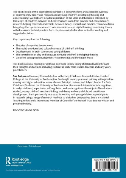 The third edition of this essential book presents a comprehensive and accessible overview of contemporary theory and research about young children's developing thinking and understanding. Sue Robson's detailed exploration of the ideas and theories is enlivened by transcripts of children's activities and conversations taken from practice and contemporary research, helping readers to make links between theory, research and practice. This new edition brings together up-to-date research into neuroscience and digital learning, combining theory with discussions for best practice. Each chapter also includes ideas for further reading and suggested activities.