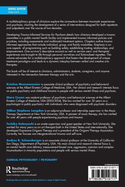 'In this fascinating book, the authors share the treasure of their extensive experience in developing trauma-informed services for patients diagnosed with psychosis. They provide the reader with a wealth of hands-on experiences, ranging from the gradual establishment of trauma-informed structures and changes in institutional policy to innovative therapeutic approaches for different settings. One of the book's greatest strengths is the strong focus on service-users' perspectives. It consistently includes the viewpoint of survivors learning from their experiences in a system that has ignored their needs for far too long. A book full of valuable advice that will literally be a textbook for a new generation of trauma-informed services.'