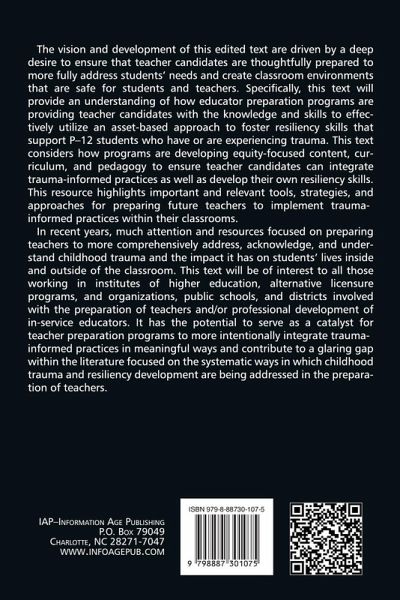 The vision and development of this edited text are driven by a deep desire to ensure that teacher candidates are thoughtfully prepared to more fully address students' needs and create classroom environments that are safe for students and teachers. Specifically, this text will provide an understanding of how educator preparation programs are providing teacher candidates with the knowledge and skills to effectively utilize an asset-based approach to foster resiliency skills that support P-12 students who have or are experiencing trauma. This text considers how programs are developing equity-focused content, curriculum, & pedagogy to ensure teacher candidates can integrate trauma-informed practices as well as develop their own resiliency skills. This resource highlights important and relevant tools, strategies, and approaches for preparing future teachers to implement trauma-informed practices within their classrooms. In recent years, much attention and resources focused on preparing teachers to more comprehensively address, acknowledge, and understand childhood trauma and the impact it has on students' lives inside and outside of the classroom. This text will be of interest to all those working in institutes of higher education, alternative licensure programs, and organizations, public schools, and districts involved with the preparation of teachers and/or professional development of in-service educators. It has the potential to serve as a catalyst for teacher preparation programs to more intentionally integrate trauma-informed practices in meaningful ways and contribute to a glaring gap within the literature focused on the systematic ways in which childhood trauma and resiliency development are being addressed in the preparation of teachers.