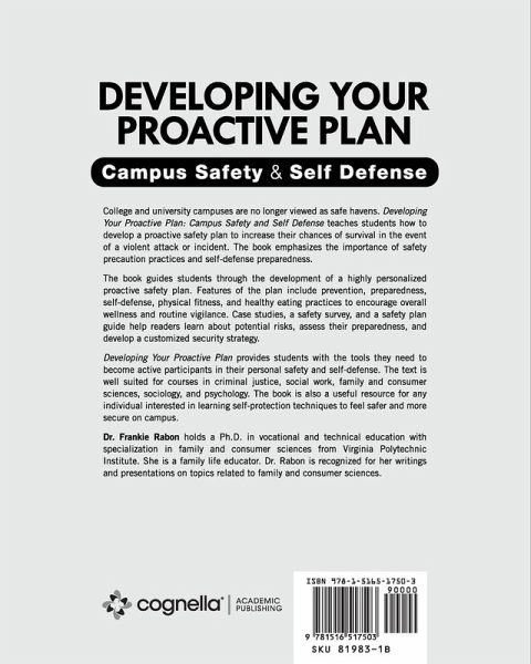 College and university campuses are no longer viewed as safe havens. Developing Your Proactive Plan: Campus Safety and Self Defense teaches students how to develop a proactive safety plan to increase their chances of survival in the event of a violent attack or incident. The book emphasizes the importance of safety precaution practices and self-defense preparedness. The book guides students through the development of a highly personalized proactive safety plan. Features of the plan include prevention, preparedness, self-defense, physical fitness, and healthy eating practices to encourage overall wellness and routine vigilance. Case studies, a safety survey, and a safety plan guide help readers learn about potential risks, assess their preparedness, and develop a customized security strategy. Developing Your Proactive Plan provides students with the tools they need to become active participants in their personal safety and self-defense. The text is well suited for courses in criminal justice, social work, family and consumer sciences, sociology, and psychology. The book is also a useful resource for any individual interested in learning self-protection techniques to feel safer and more secure on campus. Frankie Rabon, who holds a Ph.D. in vocational and technical education with a specialization in family and consumer sciences from Virginia Polytechnic Institute and State University, is a family life educator and an associate professor at Grambling State University in Louisiana. Dr. Rabon has over twenty years of experience working in family and consumer sciences and is recognized for her writings and presentations on topics related to family and consumer sciences. An approved third-level trainer in the Louisiana Pathways Child Care Career Development System, she provides expert guidance as it relates to young children from birth to eight years old in relation to their physical, intellectual, social, and emotional development, and relationships with families. Howard Gene Caviness has over 30 years of extensive and specialized law enforcement training, including positions with the LaSalle Parish Sheriff’s Department, Ouachita Parish SWAT team, Federal Bureau of Investigation, and U.S. Marshall’s Service, to name a few.