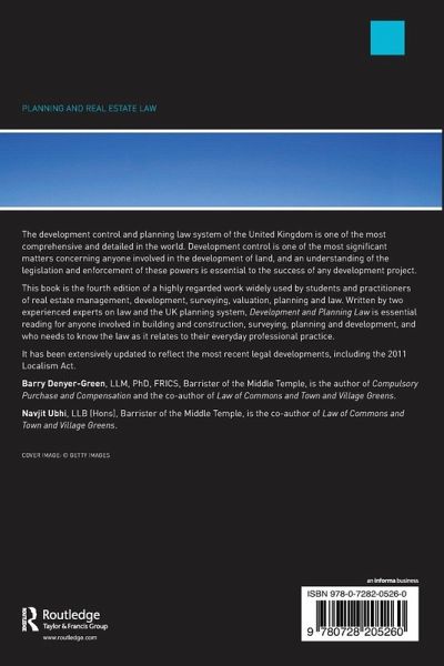 The development control and planning law system of the United Kingdom is one of the most comprehensive and detailed in the world. Development control is one of the most significant matters concerning anyone involved in the development of land, and an understanding of the legislation and enforcement of these powers is essential to the success of any development project. This book is the fourth edition of a highly regarded work widely used by students and practitioners of real estate management, development, surveying, valuation, planning and law. Written by two experienced experts on law and the UK planning system, Development and Planning Law is essential reading for anyone involved in building and construction, surveying, planning and development, and who needs to know the law as it relates to their everyday professional practice. It has been extensively updated to reflect the most recent legal developments, including the 2011 Localism Act.
