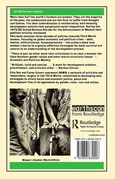 More than half of the world's farmers are women. They are the majority of the poor, the uneducated and are the first to suffer from drought and famine. Yet their subordination is reinforced by well-meaning development policies that perpetuate social inequalities. During the 1975-85 United Nations Decade for the Advancement of Women their position actually worsened.This book analyses three decades of policies towards Third World women. Focusing on global economic and political crises - debt, famine, militarization, fundamentalism - the authors show how women's moves to organize effective strategies for basic survival are central to an understanding of the development process.