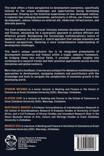 This book offers a fresh perspective on development economics, specifically tailored to the unique challenges and opportunities facing developing economies. Drawing on the historical experiences of now-developed nations, it explores how emerging economies, particularly in Africa, can finance their development, reduce reliance on external aid, modernise infrastructure, and alleviate poverty. The book emphasizes the crucial interplay between development economics and finance, advocating for a synergistic approach to achieve efficient and effective growth. Recognising the increasingly multidisciplinary nature of modern research, it champions a hybrid approach that merges economic and financial perspectives, fostering a more comprehensive understanding of development challenges. This book's unique contribution lies in its integrated presentation of development economics and finance within a single, cohesive framework. By bridging these two critical fields, it provides valuable insights into contemporary research trends and their practical applications across diverse disciplines and global contexts. More than just a textbook, it serves as a catalyst for debate on multidisciplinary approaches to development, equipping students and practitioners with the knowledge and tools to navigate the complexities of economic growth in the developing world.
