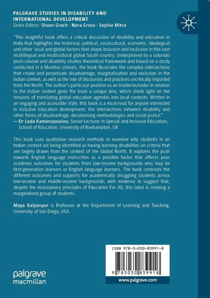 This book uses qualitative research methods to examine why students in an Indian context are being identified as having learning disabilities on criteria that are largely drawn from the context of the Global North. It explores the push towards English language instruction as a possible factor that affects poor academic outcomes for students from low-income backgrounds who may be first-generation learners or English language learners. The book contrasts the different outcomes and supports for academically struggling students across low-income and middle-income backgrounds, with evidence to suggest that, despite the inclusionary principles of Education For All, this label is creating a marginalized group of students.