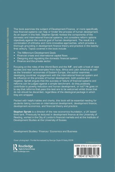 This book examines the subject of Development Finance, or more specifically how financial systems can help or hinder the process of human development. As an expert in this field, Stephen Spratt reviews the components of the domestic and international financial systems, and considers reform options objectively against the central goal of human development. The result is a combination of orthodox and more innovative approaches, which provides a thorough grounding in development finance theory and practice in the 21st century. Topics covered in the book include: The Millennium Development Goals Financial crises and international capital flows The role of the private sector Microfinance. Focusing on the roles of the World Bank and the IMF and with a host of case studies and real world examples from Asia, Africa and Latin America as well as the "transition" economies of Eastern Europe, the author examines developing countries' engagement with the international financial system and its influence on the process of human development, both positive and negative.