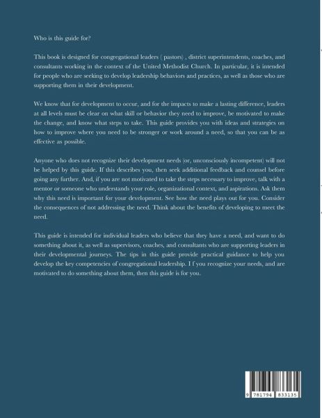 This book is designed for congregational leaders (pastors), district superintendents, coaches, and consultants working in the context of the United Methodist Church. In particular, it is intended for people who are seeking to develop leadership behaviors and practices, as well as those who are supporting them in their development.