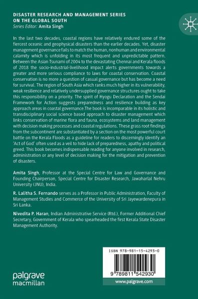 The book is incomparable in its holistic and transdisciplinary social science based approach to disaster management which links conservation of marine flora and fauna, ecosystems and land management with decision making processes and coastal regulations. These grass root findings from the subcontinent are substantiated by a section on the most powerful court battle on the Kerala Floods as a guideline for readers to discerningly identify an 'Act of God' often used as a veil to hide lack of preparedness, apathy and political greed. This book becomes indispensable reading for anyone involved in research, administration or any level of decision making for the mitigation and prevention of disasters.