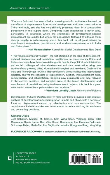 Foreword, Michael Cernea Preface Acknowledgments Introduction, Florence Padovani Part I: Development Project-Induced Migration: A State Mission Chapter 1: Migration and Development Strategies in Post-1949 China, Kam Wing Chan Chapter 2: A Gaze without a Gaze: State, Development, and the Internally Displaced Persons in Contemporary India, Samir Kumar Das Part II: The Organization of the Political and Administrative Structures Dealing with Migrants Chapter 3: An Analysis of Policies on the Migration of Rural Labor, Hongyuan Song and Guangming Liu Chapter 4: Internal Migration in India: Dealing with the Political and Administrative Organization, S. Irudaya Rajan, Vijay Korra, and Rikil Chyrmang Part III: Mumbay and Shanghai: Two Cities Developing at High Speed: Analysis of the Social Impact Chapter 5: "Shanghai Speed": The Development System and Urban Dwellers' Experiences, Yingfang Chen Chapter 6: Shanghaiing Mumbai: Resettlement Programs and Social Cost of Urban Development Policies, Marie-Caroline Saglio-Yatzimirsky Part IV: The Gosikhurd and Three Gorges Dams: The Social Cost of Energy Chapter 7: State Science and Resettlement Knowledge: The Gosikhurd Dam in Vidarbha, Joël Cabalion Chapter 8: Analysis of the Social Implications of the Three Gorges Dam Project, Florence Padovani Chapter 9: In China: Analysis of the Interest Expression Mechanisms amongst Chinese Dam Resettlees: An Account of the First Case Linked to the Three Gorges Resettlement, Xing Ying