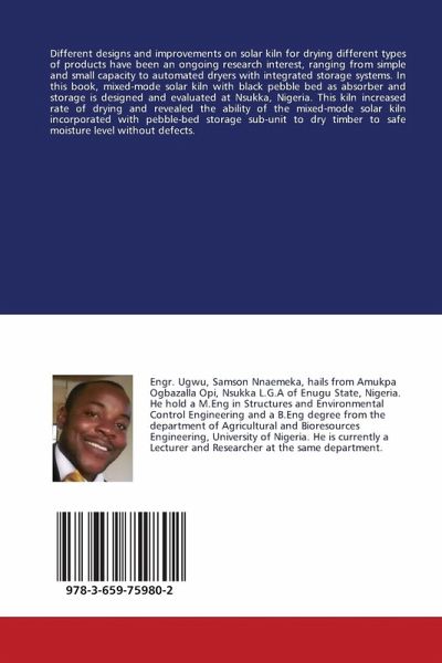 Different designs and improvements on solar kiln for drying different types of products have been an ongoing research interest, ranging from simple and small capacity to automated dryers with integrated storage systems. In this book, mixed-mode solar kiln with black pebble bed as absorber and storage is designed and evaluated at Nsukka, Nigeria. This kiln increased rate of drying and revealed the ability of the mixed-mode solar kiln incorporated with pebble-bed storage sub-unit to dry timber to safe moisture level without defects.