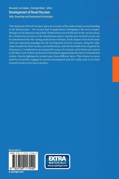 "Development of novel vaccines" gives an overview of the tasks in basic research leading to the final product - the vaccine and its applications, belonging to the most complex biologics in the pharmaceutical field. Distinct from most textbooks in the vaccine arena, the current issue focuses on the translational aspect, namely, how research results can be transformed into life-saving medical interventions. Each chapter of the book deals with one important paradigm for the development of novel vaccines, along the value chain towards the final vaccine, and furthermore, with the inevitable tools required for this process. Contributions are prepared by teams of scientists, all of whom are experts in the field, most of them anchored in biomedical organizations devoted to translational culture, thereby lighting the certain topics from different views. This volume is a must read for researchers engaged in vaccine development and who really want to see their research results to become a product.
